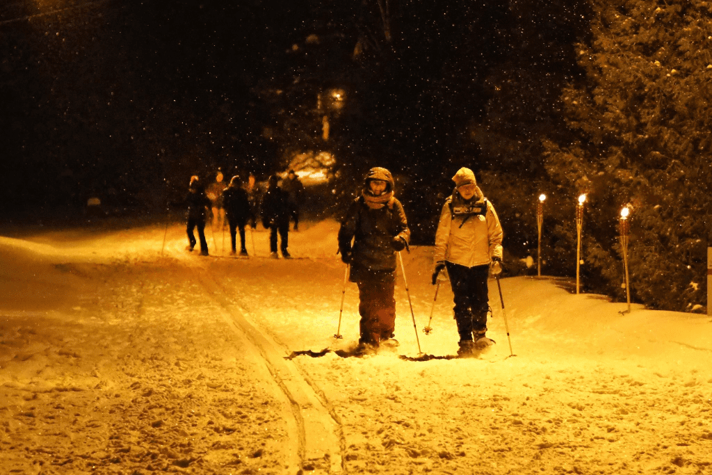 Cette campagne culmine avec deux soirées aux Flambeaux (14 et 28 février), qui sont en fait de la marche ou randonnée en raquettes) sur des sentiers illuminés (environ 2.5km) accessibles à tous.
